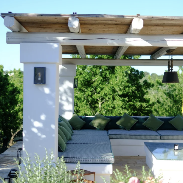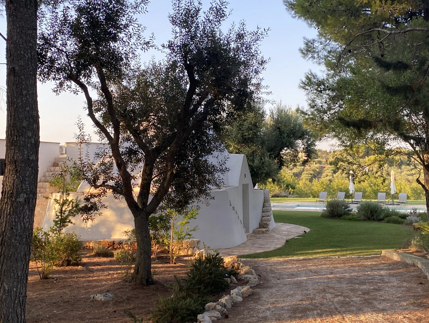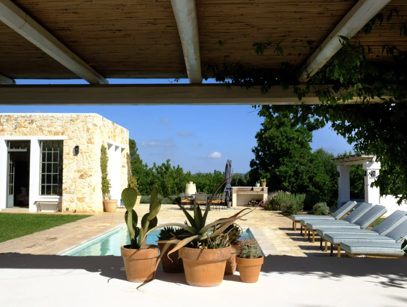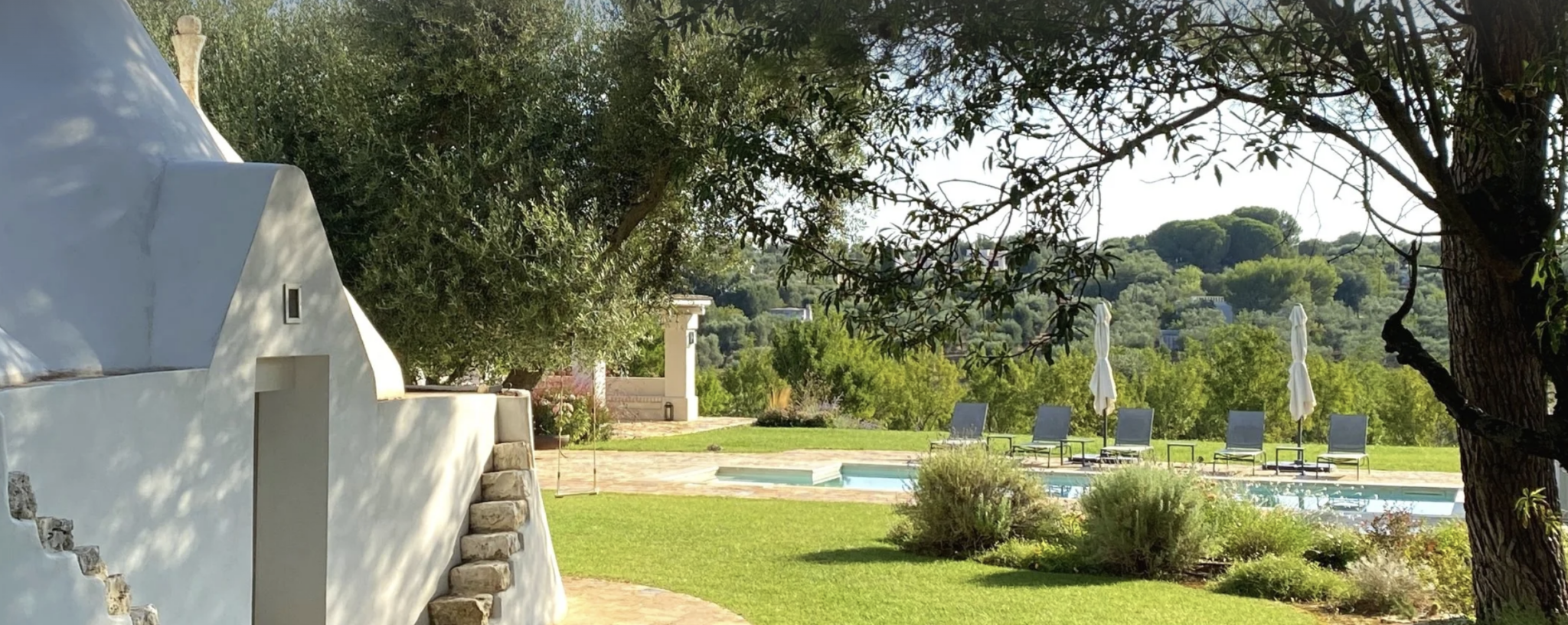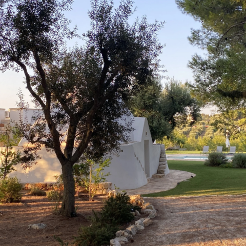 Set back from the country lane and nestled in a small pine woodland, the villa is spread over two separate buildings: the original trullo and the main house. The trullo is a traditional Apulian dry stone hut, while the main house is a modern villa that has been tastefully designed to complement the trullo.