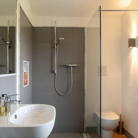 * Large shower room, with toilet, bidet and sink.