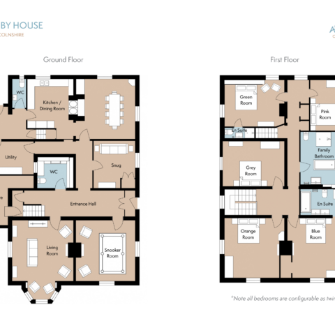 Walesby House sleeps 10 in five bedrooms, two with en‑suite bathrooms, plus a large family bathroom. All beds can be arranged as superking/king or twin singles for maximum flexibility.